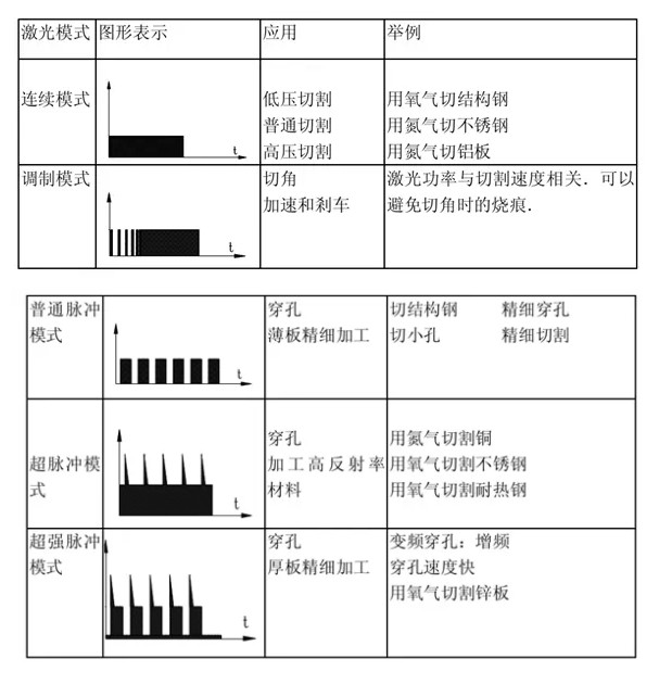 各種不同的激光運行模式、應(yīng)用范圍舉例