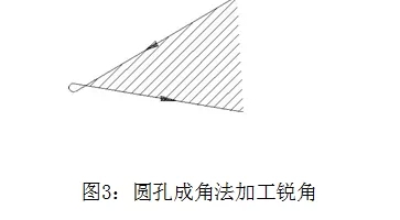 當(dāng)在薄板上高速切割時,建議使用圓孔成角法切割尖角,它有下列好處:a)切割尖角時,軸向變化均勻;b)切角時,切速恒定;c)防止了軸振動,避免毛刺生成;d)尖角處的熱影響區(qū)小。