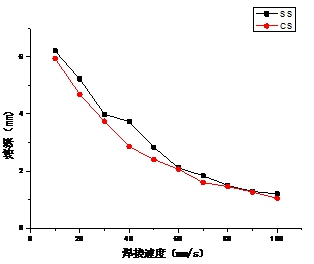 圖2 熔深隨焊接速度的變化(平板堆焊)