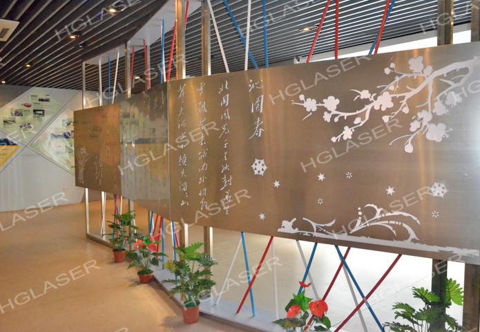 別以為激光切割只能用在飛機汽車、機械上,在室內(nèi)裝修時,也能看到不少激光元素。下圖中展示的是一套由激光切割而成的金屬屏風,屏風上一首毛澤東的《沁園春·雪》完全由激光切雕而成。豪邁的詞風,搭配剛勁有力的激光,實在是絕配!
