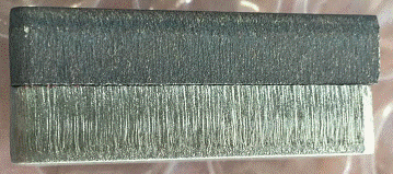 根據(jù)數(shù)據(jù)可以看到,空氣切割不銹鋼時除了3mm厚度切割速度沒有增加,切割其他厚度速度都有不同程度的提升。一般人可能認(rèn)為,空氣中含有20%左右的氧氣,切割出的斷面肯定是發(fā)黃發(fā)黑的,根據(jù)我們測試的效果看,2mm以下不銹鋼使用空氣切割出來的效果幾乎是白色亮面無渣,這主要是由于光纖激光器能量密度大熱影響區(qū)域小,當(dāng)切割速度夠快時氧化效果不明顯。3-4mm切割斷面呈略黃狀態(tài),斷面不錯,無掛渣。5-10mm厚度斷面發(fā)黑,厚度越大速度越慢,斷面越黑,但是空氣切割速度還是比氮?dú)馇懈钏俣忍岣卟簧?。我們知道切割不銹鋼時厚度越大所需的氣體壓力就越大,例如切割10mm不銹鋼時切割氣體壓力需要達(dá)到1.5-1.8mpa,一瓶普通氮?dú)?0分鐘不到就用完了,一瓶氮?dú)獾某杀敬蠹s25元,一個小時算下來氣體成本至少也要100元,而用空氣切割只消耗電費(fèi)一個小時成本不超過10塊錢。事實上很多客戶對切割工件斷面顏色本身并無過多要求,主要是尺寸要求,還有無掛渣??諝馇懈?mm以下不銹鋼無掛渣,10mm不銹鋼只有少量毛渣,很容易就處理掉。如下圖:上面為空切割,下面為氮?dú)馇懈?0mm不銹鋼。