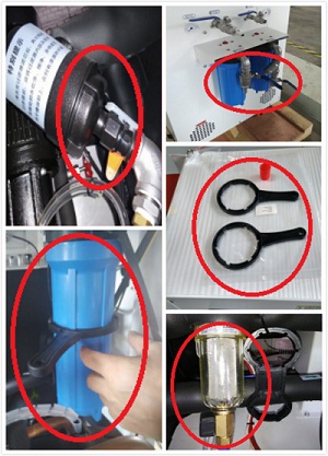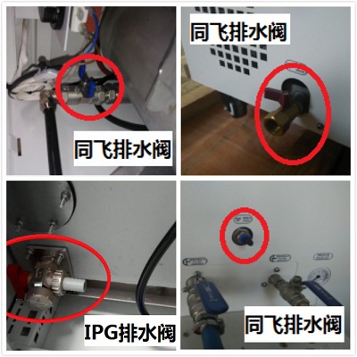 7、最后將激光器和水冷機外部其它的水管管路里的水放凈吹干(反復(fù)吹)。